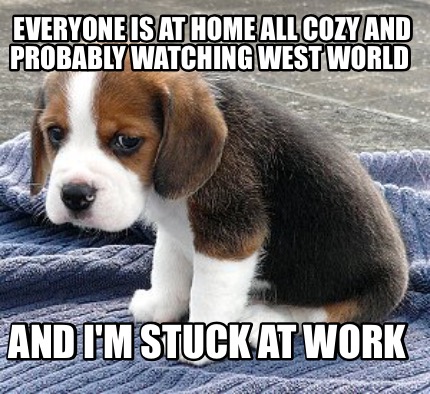 Meme Maker Everyone Is At Home All Cozy And Probably Watching West World And I M Stuck At Meme Generator